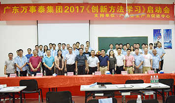 集團訊 為提升企業(yè)一線科技人員創(chuàng)新思維和創(chuàng)新能力,促進企業(yè)技術(shù)創(chuàng)新和科技成果轉(zhuǎn)化,進一步擴大創(chuàng)新方法推廣應(yīng)用范圍,以及提高企業(yè)整體研發(fā)速度,在廣東省生產(chǎn)力促進中心鼎力支持下,萬事泰集團開設(shè)了2017創(chuàng)新方法學(xué)習(xí)培訓(xùn)課堂。7月15日,廣東萬事泰集團2017創(chuàng)新方法學(xué)習(xí)啟動會在萬事泰總部食堂三樓培訓(xùn)室舉行。省生產(chǎn)力促進中心主任陳金德、院長梁雪梅、縣不銹鋼商會副會長兼秘書長彭藝年、研究院老師陳國榮、閩雁…