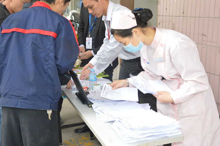 12月26日開始,體檢福利活動為期四天,萬事泰集團(tuán)將流動體檢車和專業(yè)的體檢人員請到集團(tuán)內(nèi),來零距離為員工進(jìn)行服務(wù),3000余名員工將分批在萬事泰籃球場、員工飯?zhí)萌龢桥嘤?xùn)室進(jìn)行體檢。其中包括血液檢查、X線檢查、B超檢查等多項(xiàng)檢查項(xiàng)目。小編在現(xiàn)場看到,體檢現(xiàn)場安靜整潔,井然有序,體檢員工自覺排隊(duì)參加各項(xiàng)檢查,并不時(shí)與現(xiàn)場醫(yī)務(wù)人員互動,咨詢了關(guān)于健康的問題,醫(yī)務(wù)人員都給予了詳細(xì)回答與建議。