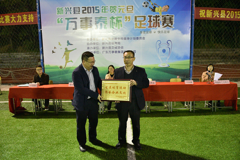 2015年12月29日晚7時(shí),被稱為新興人自己的中超聯(lián)賽的“萬事泰杯”足球賽冠亞軍爭奪戰(zhàn)在新興理工學(xué)校拉開戰(zhàn)幕。決賽在兩個組別分別展開,最終六祖鎮(zhèn)和交通系統(tǒng)分別奪冠。球賽的唯一贊助方——廣東萬事泰集團(tuán)常務(wù)副總裁劉炳耀先生親臨現(xiàn)場為球員吶喊助威,并為獲勝球隊(duì)頒獎。