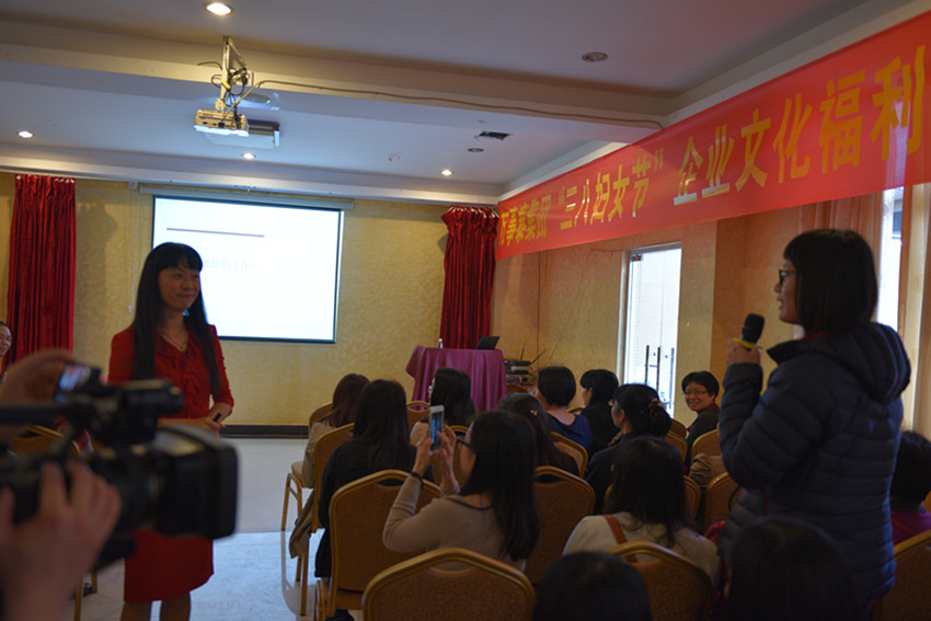 2016年3月8日下午5-6時(shí),南豪酒店5樓1號(hào)會(huì)議廳,順德知名學(xué)者型主持人、佛山大思享文化傳播有限公司簽約講師葉琳琳女士為集團(tuán)員工帶來了一場(chǎng)福利專題講座《讓你的工作更完美,家庭更幸?!?,新興縣婦聯(lián)副主席梁翠英,新興縣經(jīng)貿(mào)系統(tǒng)黨委副書記、工會(huì)主席陳婉華等領(lǐng)導(dǎo)出席活動(dòng),集團(tuán)女員工有近百人參與,現(xiàn)場(chǎng)氣氛活躍,老師與員工進(jìn)行了深入的溝通交流。新興電視臺(tái)等媒體到場(chǎng)報(bào)道,并對(duì)活動(dòng)主策劃人、萬事泰集團(tuán)工會(huì)主席梁洪光進(jìn)行采訪。
