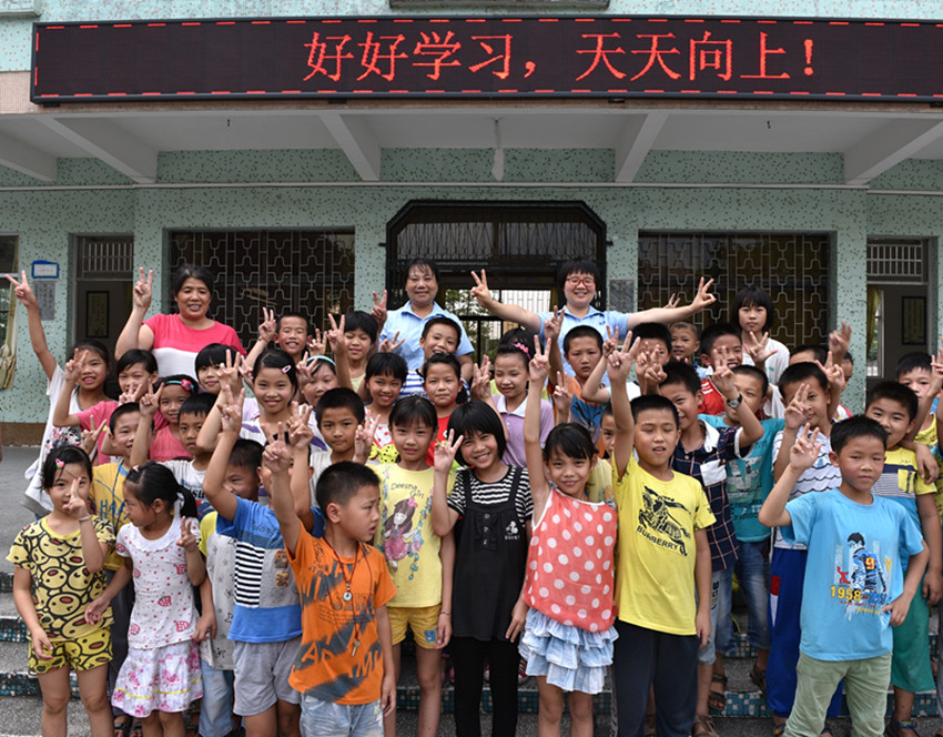 萬(wàn)事泰集團(tuán)慰問(wèn)員工代表與鳳凰小學(xué)師生們開(kāi)心的合影留念。