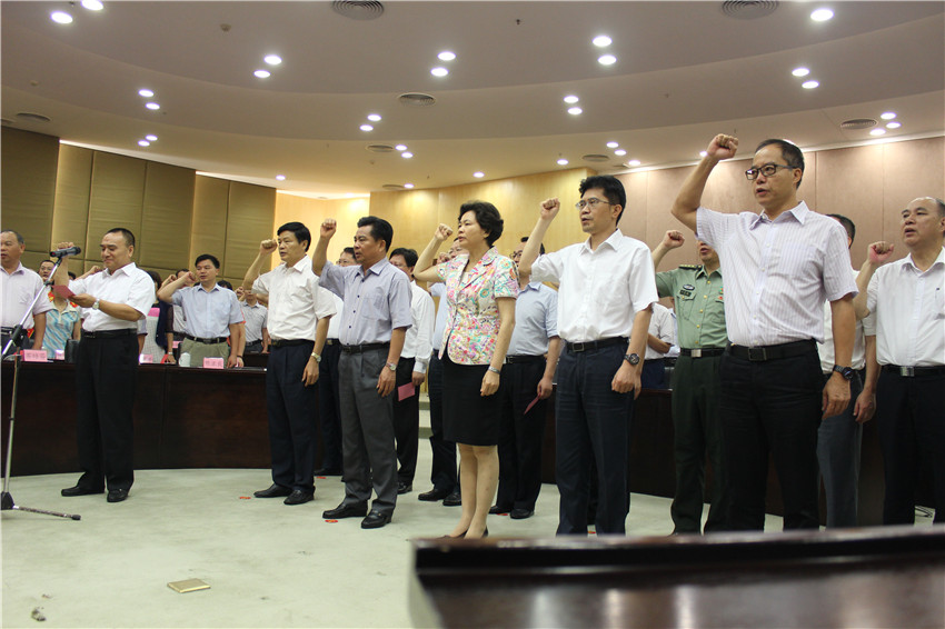 6月30日上午,云浮市隆重舉行慶祝中國共產(chǎn)黨成立95周年大會,市委書記、市人大常委會主任龐國梅出席會議并講話,市委副書記、市長王勝主持會議。