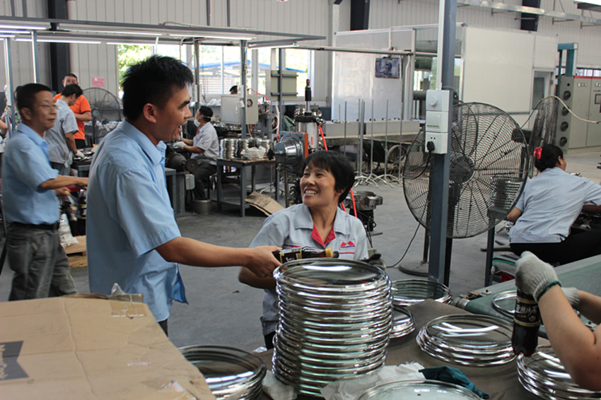 隨后,活動的發(fā)起部門企業(yè)文化部與行政部代表驅(qū)車將冰鎮(zhèn)飲品送往嘉事泰玻蓋車間,為100余名員工送去清涼,事業(yè)四部副總經(jīng)理李耀聯(lián)合管理層,親自將飲料送到車間員工手中。