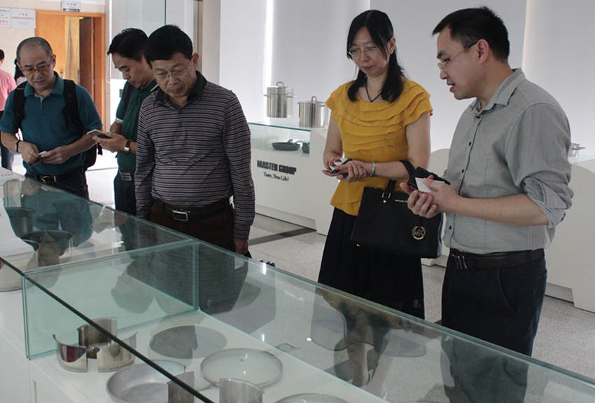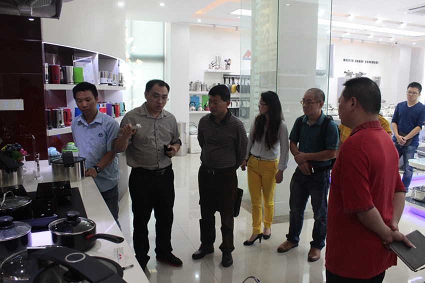隨后調(diào)研組的領(lǐng)導(dǎo)們來到了萬事泰智能廚房多功能展廳參觀,總裁辦助理歐劍華為調(diào)研組的領(lǐng)導(dǎo)們介紹了集團公司不銹鋼產(chǎn)品、鋁制品的工藝特點,以及萬事泰自主研發(fā)的智能烹飪臺E-cook table和帶有溫度傳感器的不粘鍋,為調(diào)研組一行展示了萬事泰科技創(chuàng)新轉(zhuǎn)型升級的新產(chǎn)品和新方向。