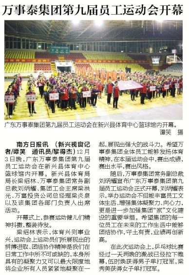 南方日?qǐng)?bào)訊(新興視窗記者/譚笑 通訊員/黎德杰)12月3日晚,廣東萬事泰集團(tuán)第九屆員工運(yùn)動(dòng)會(huì)在新興縣體育中心籃球館內(nèi)開幕。新興體育局局長(zhǎng)梁紹林、萬事泰集團(tuán)常務(wù)副總裁劉炳耀、集團(tuán)工會(huì)主席梁洪光、萬富投資公司總經(jīng)理梁炎泉以及該集團(tuán)各部門負(fù)責(zé)人出席活動(dòng)。
