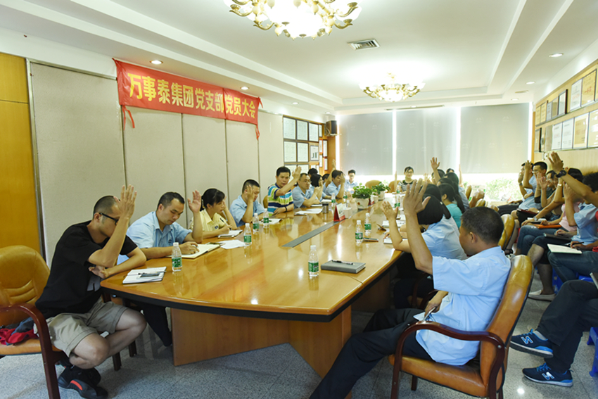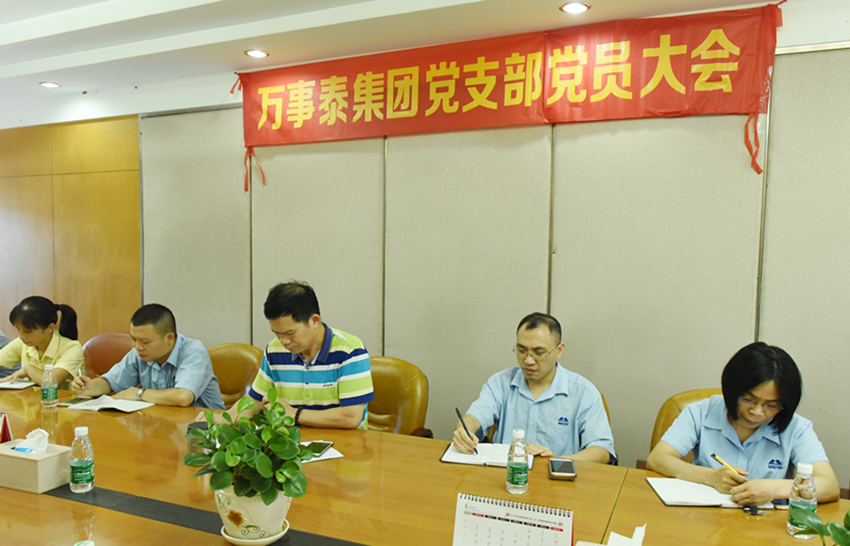 集團(tuán)訊 6月27日,2017年萬事泰集團(tuán)黨支部黨員大會(huì)在集團(tuán)一樓大會(huì)議室內(nèi)日常召開,全體黨員出席會(huì)議。