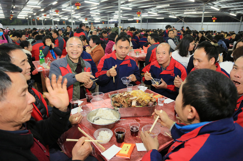 在梁董、劉總的祝酒聲中,大家聚集在一起,同品百家菜、共吃一鍋飯,共敘家長里短,歡聲笑語中,溢出的是濃濃的幸福味。