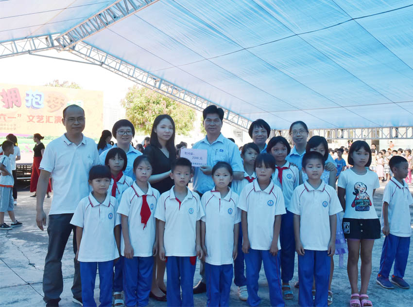 萬(wàn)事泰工會(huì)主席梁洪光代表集團(tuán)為王香地小學(xué)送上六一慰問(wèn)金