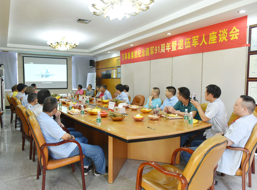 集團(tuán)訊 8月1日,為慶祝中國(guó)人民解放軍建軍91周年,弘揚(yáng)軍人作風(fēng),凝聚團(tuán)隊(duì)士氣,萬(wàn)事泰集團(tuán)召開了慶 “八一”建軍節(jié)暨退伍軍人座談會(huì)。會(huì)議由黨支部書記、行政部經(jīng)理陳永錦主持,集團(tuán)總裁辦主任梁賢武出席了會(huì)議,退伍軍人職工30余人參加了座談會(huì)。