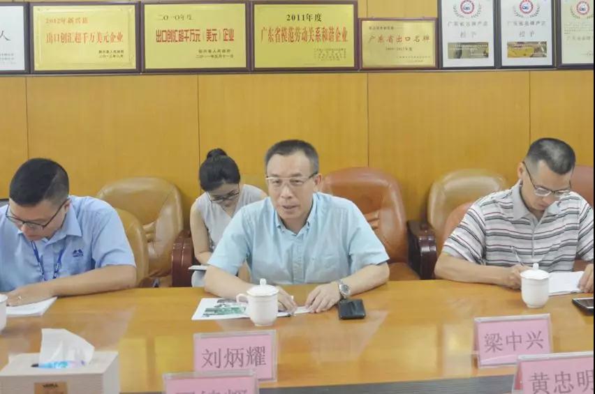 6月26日,云浮市市人社局羅錦輝副局長一行蒞臨我司考察調(diào)研博士、博士后載體相關(guān)工作,新興縣人社局局長林慶武等縣領(lǐng)導(dǎo)陪同調(diào)研。萬事泰常務(wù)副總裁劉炳耀、總裁辦歐劍華、人力資源部經(jīng)理梁中興、研究所陳健博士等集團領(lǐng)導(dǎo)熱情接待并陪同。