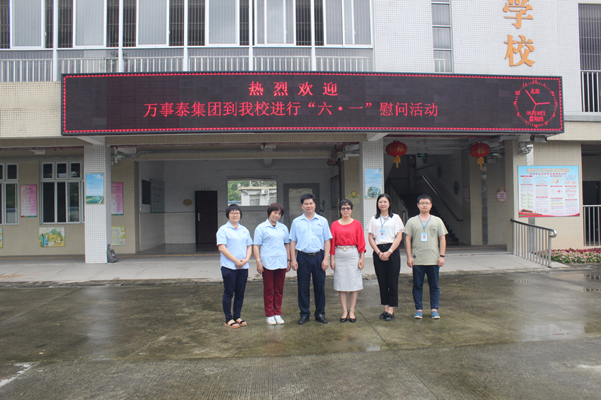 在5月30日下午,“六一”國際兒童節(jié)即將來臨之際,萬事泰集團工會主席梁洪光、行政部蘇瑞萍、溫文翠一行分別來到新興縣特殊教育學(xué)校、王香地小學(xué)、鳳凰小學(xué)、啟智康復(fù)中心、隴塘小學(xué)開展慰問活動,給孩子們送上節(jié)日的問候與祝福。