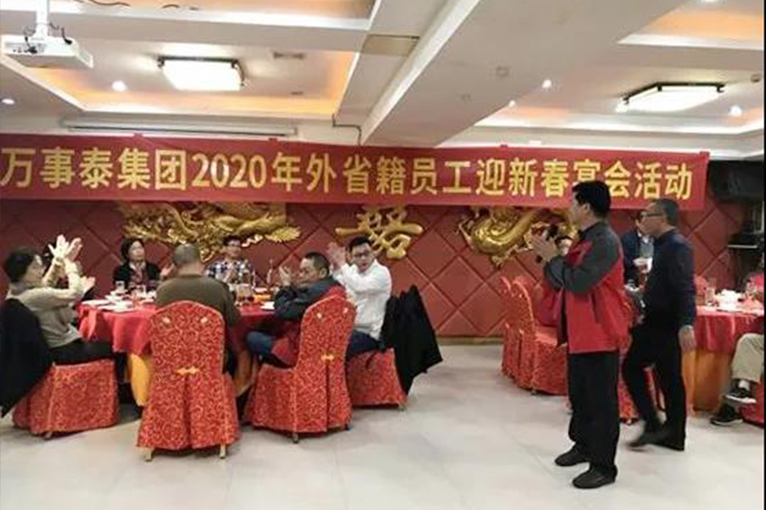 晚宴上,工會(huì)主席梁洪光代表集團(tuán)公司作了講話,并向全體外來員工致以節(jié)日的問候和深深的祝福。他說:“在新春佳節(jié)來臨之際,希望大家把萬事泰當(dāng)作是自己的家,安安心心、高高興興在萬事泰過大年?!彼€提到,“過去的一年有大家的努力,集團(tuán)在困境中能突破困難,迎難以上,取得了好成績(jī),集團(tuán)非常感謝你們!”