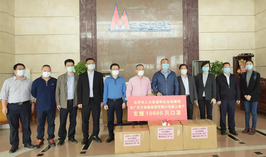 最后由云浮市人社部門贈(zèng)送我司防疫口罩10000只,以助力企業(yè)復(fù)工復(fù)產(chǎn)。