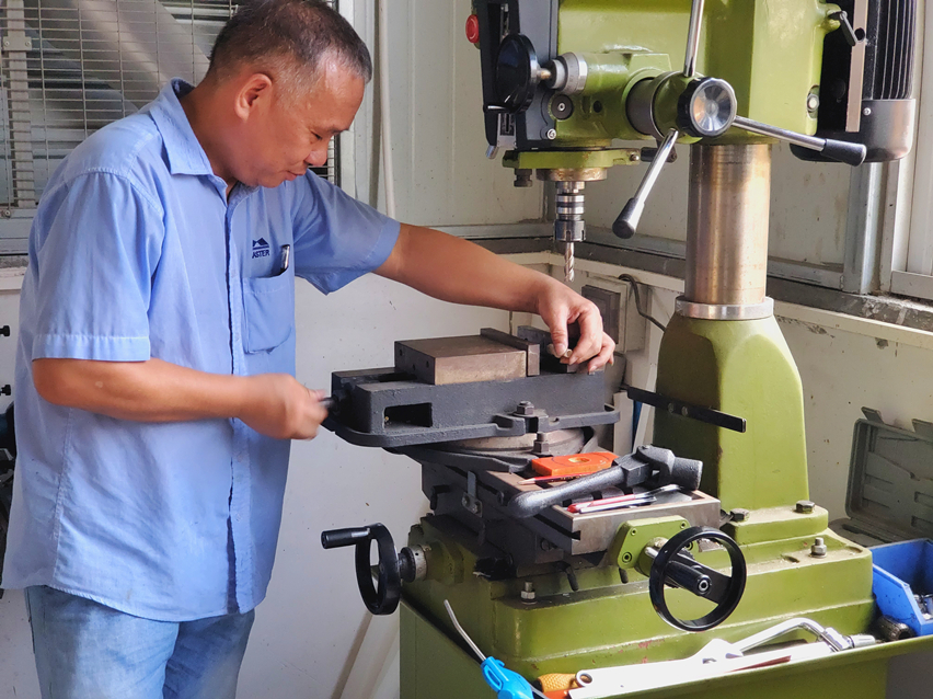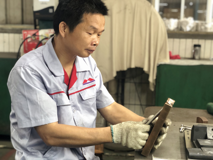 梁杰創(chuàng),他是廚具中心工程部的一名模具工,至今已從事模具工作17年,他用兢兢業(yè)業(yè)、追求卓越的工匠精神,成為萬事泰模具制造開發(fā)的主力軍之一。他主要負(fù)責(zé)制作極具挑戰(zhàn)性的異型模具,如今精湛的工藝技術(shù)離不開這17年來一步步的探索、學(xué)習(xí)和沉淀。他認(rèn)為擔(dān)任此份工作最重要的是聽取各方意見,找出最佳方案。模具被譽為“工業(yè)之母”,它是流水線生產(chǎn)的必要條件,模具生產(chǎn)枯燥無味,需要不斷打磨、校準(zhǔn),一遍一遍反復(fù)修正,可正是這不計其數(shù)的打磨,更能體現(xiàn)出這份工作的一種精益求精的堅持。