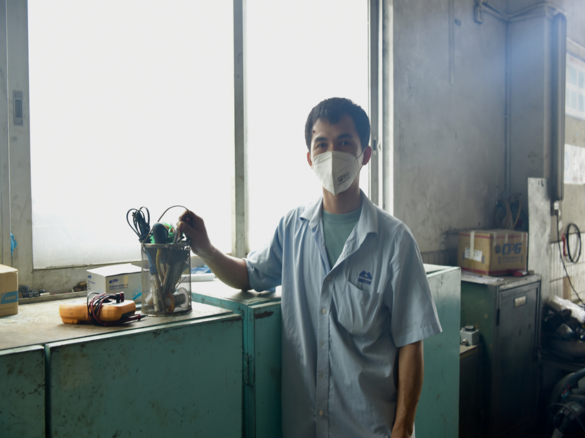 “哪里急先修哪里,看到問題及時處理”,這是林耀檳的口頭禪,他是廚具中心綜合辦設(shè)備科的一位資深電工和維修工。2007年加入萬事泰集團,至今已13個年頭,他主要負(fù)責(zé)鋁表面車間的機電維修工作,每天上班第一時間是巡查車間,仔細(xì)觀察所有機器和電路的運作情況,做到精而又精,細(xì)而又細(xì)。當(dāng)小編問到他堅持13年的秘笈時,他笑了笑表示道,“一開始,興趣是最好的老師,能讓我十年如一日堅守崗位,再后來,對這份職業(yè)的責(zé)任感成了我最大的動力”。隨著科技水平的提升以及國家制造業(yè)的蓬勃發(fā)展,一些高科技機械設(shè)備不斷涌現(xiàn),時代淘汰了止步不前的電工從業(yè)者,留下的是精益求精和不斷創(chuàng)新的工匠,繼續(xù)為我們傳承著專業(yè)、執(zhí)著、堅守和毅力的工匠精神。