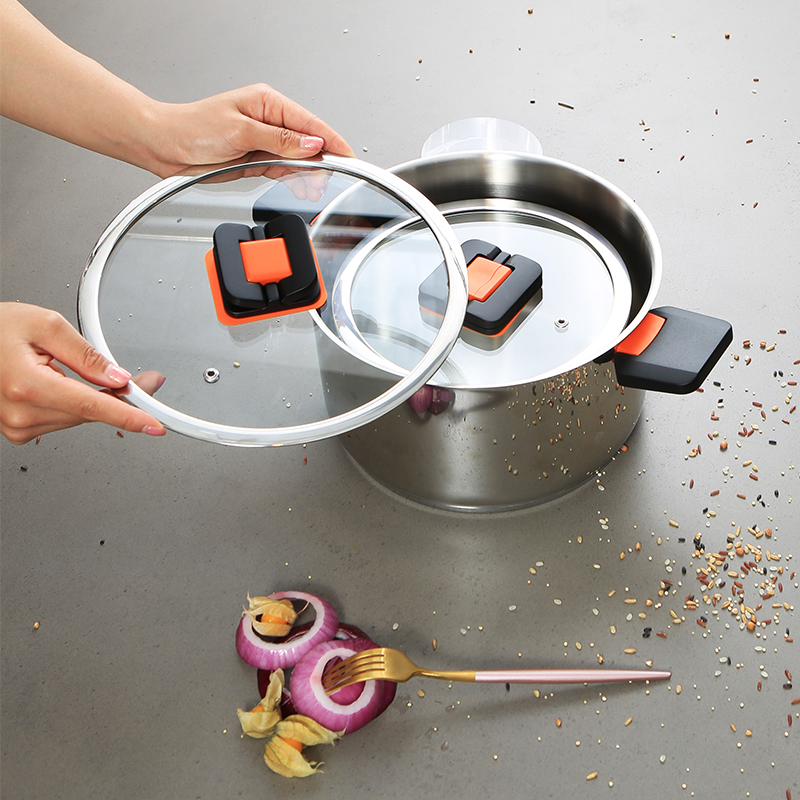 魔術(shù)系列是一款收納性強(qiáng),功能強(qiáng)大,性價(jià)比高的鍋具套裝。蓋耳和煲耳運(yùn)用韌性極強(qiáng)的尼龍材質(zhì),通過巧妙的結(jié)構(gòu)設(shè)計(jì)創(chuàng)新性地使煲耳和蓋耳可以折疊收納,使20規(guī)格的鍋具可完全收納于24規(guī)格的鍋具之內(nèi),在外觀上看,只有一個(gè)24規(guī)格的鍋具,就像變魔術(shù)一樣。大大提高收納性能,通過數(shù)據(jù)分析,整整節(jié)省了40%的空間。煲身采用安全無毒抗腐蝕的食品級(jí)304材質(zhì),鍋底適應(yīng)多種爐灶,鍋蓋采用平板鋼化透明可視玻璃蓋,對(duì)食物的生熟一目了然。