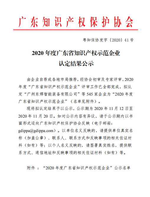 集團訊 日前,廣東知識產(chǎn)權保護協(xié)會公示了2020年度廣東省知識產(chǎn)權示范企業(yè)認定結果。憑借在技術創(chuàng)新和知識產(chǎn)權管理工作上的突出表現(xiàn),廣東萬事泰集團被認定為“2020年度廣東省知識產(chǎn)權示范企業(yè)”。