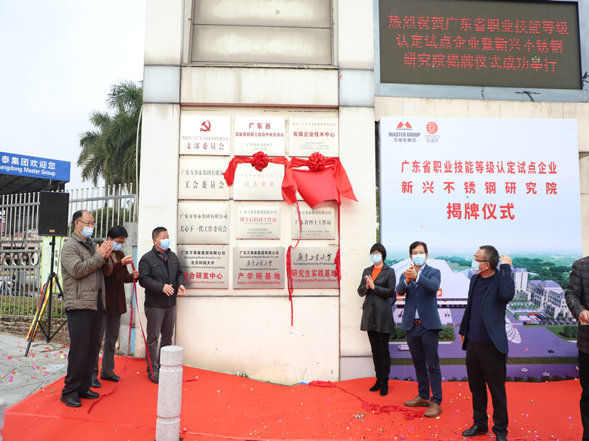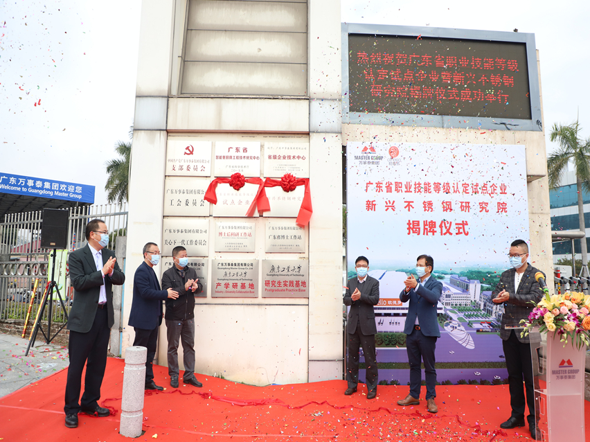集團訊 1月22日上午,萬事泰集團舉行了廣東省職業(yè)技能等級認(rèn)定試點企業(yè)暨新興不銹鋼研究院揭牌儀式。云浮市科學(xué)技術(shù)局、市人力資源和社會保障局與新興縣人民政府等機關(guān)單位領(lǐng)導(dǎo),新興縣不銹鋼商會及其會員企業(yè)代表共同見證了這富有意義的時刻,萬事泰集團董事長梁桂泉、執(zhí)行總裁劉炳耀等集團領(lǐng)導(dǎo)出席了儀式。儀式由新興不銹鋼研究院院長陳健主持。萬事泰集團中心級部門負(fù)責(zé)人參加活動。